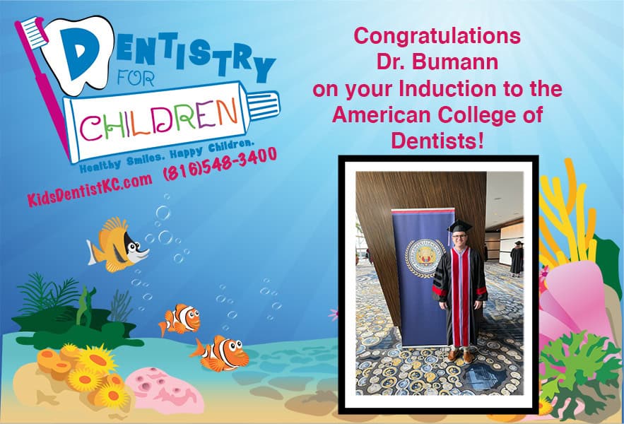 The American College of Dentists (ACD) is the oldest national-level honorary organization for dentists. It is an invitation only organization for members who display outstanding leadership and exceptional contributions to dentistry and society. Dr. Bumann’s fellowship in the Amercian College of Dentists will not change anything about his position with Dentistry for Children, but rather enhance his ability to be a leader in the dental field overall.