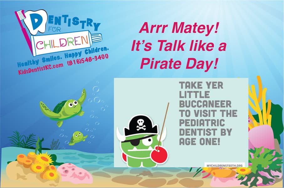 Talk like a Pirate Day at Dentistry For Children!According to the American Academy of Pediatric Dentistry’s Facebook page. Every Sept 19th is International Talk Like a Pirate Day.